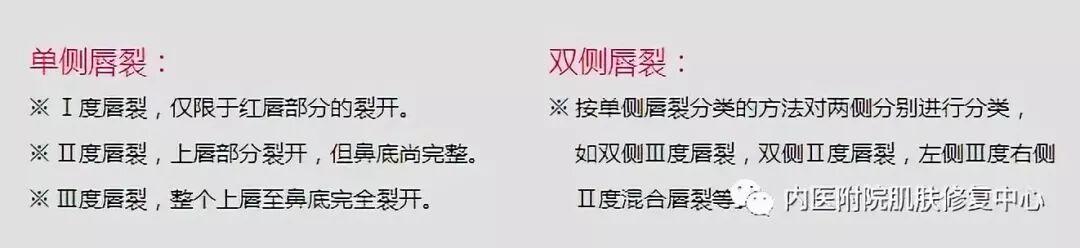 2.双侧唇裂 不完全型、完全型和混合型即一侧完全一则不完全型。